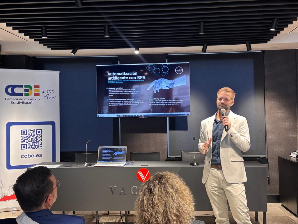 La jornada contó también con la mesa redonda «¿Cómo se hacen negocios entre Brasil y España en el ámbito de la tecnología y qué papel pueden jugar las tecnologías más disruptivas para dinamizarlos? El papel de la IA y las Deep Tech«, con la participación de Murilo Gomes, CEO de Mag IT; Francisco Ruiz, partner y head of AI & emergent tech en Stratesys; y Thiago Borba, VP of Growth para Southern Europe en V-Tex.