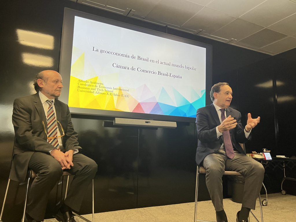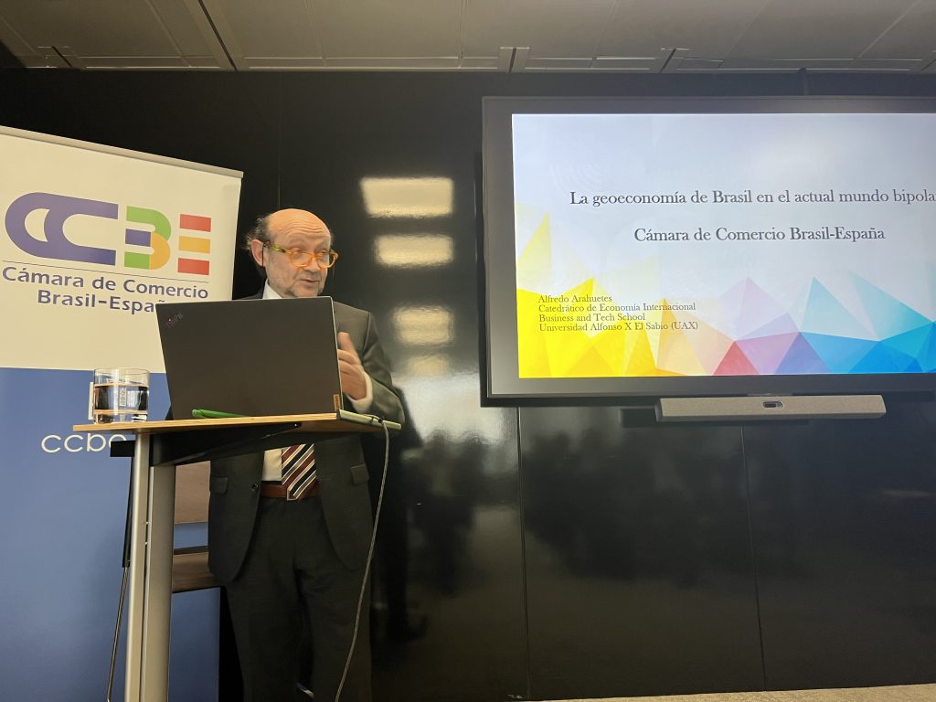 Centrándonos en Brasil, Arahuetes explicó que “mientras el 36,5% de las exportaciones mundiales están en manos de los países del sur global (27,2% en ambos de China y Hong Kong), Brasil mantiene relaciones comerciales de forma muy pragmática con muchos países y regiones, importando el 41% de países avanzados”. A lo que añadió que, “mientras China representa el 22%, Brasil no se sacrifica en términos ideológicos, porque busca el beneficio y desarrollo de su población. Es un país muy pragmático”. Además, “Brasil avanza en su inversión exterior, principalmente en países avanzados” concluyó el economista.