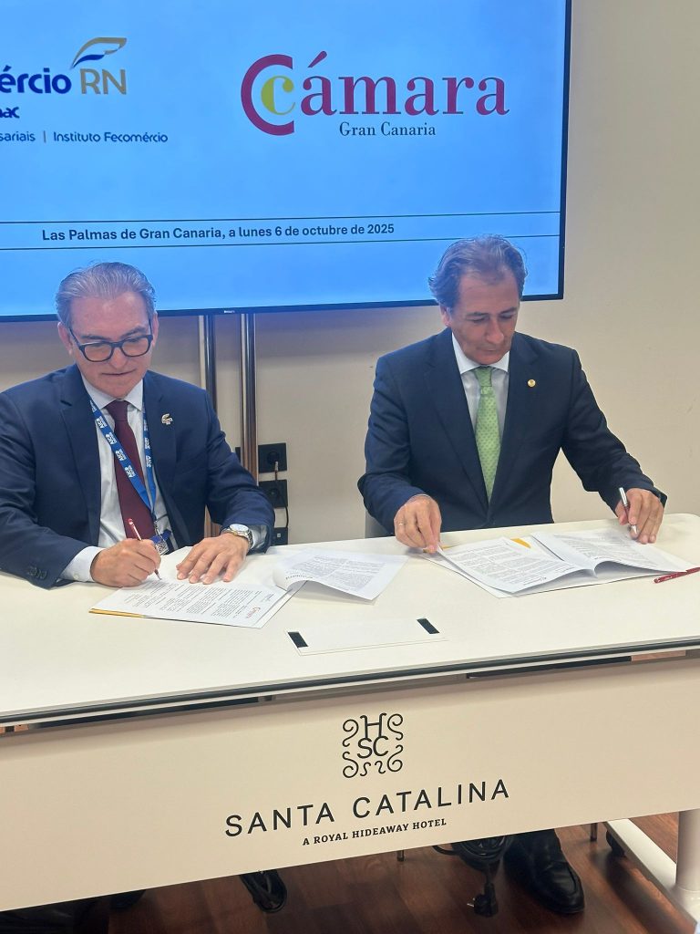 La Cámara de Comercio Brasil-España, CCBE, ha contribuido a la firma del convenio entre el Sistema Fecomércio RN y la Cámara Oficial de Comercio, Industria, Servicios y Navegación de Gran Canaria.
