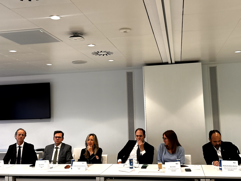 La presidenta de la CCBE inauguró el encuentro subrayando el papel estratégico de Brasil como socio prioritario para las empresas españolas que apuestan por la internacionalización. A continuación, Juan Pablo López Pico, director de Multinacionales de Santander España, reafirmó el compromiso del Banco Santander con el desarrollo de proyectos que generen un impacto positivo en América Latina. Por su parte, María Valero, directora de Negocio Internacional, destacó el papel activo de Banco Santander en la financiación y acompañamiento de iniciativas que contribuyan al crecimiento empresarial en la región.